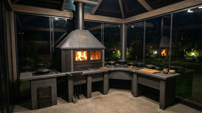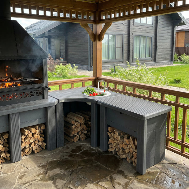 Идеальный комплект для приготовления на открытом воздухе и в беседке! Включает объединенную Царь-печь, русскую печь "Крестьянка", стол-мойку "Боярыня", разделочный стол угловой, комплект декоративных дверок, решетку-гриль "Царь-печь", казан на 10 литров, пекарский камень и набор для печи. Объединенная Царь-печь превосходно подойдет для блюд-гриль и шашлыки для настоящих гурманов. Русская печь "Крестьянка" идеальна для пиццы, мяса в горшочках, каш и супов. Мойка из металла облагородит зону барбекю, позволяя легко мыть овощи и убирать остатки пищи с гриля. Разделочный стол угловой, выполненный из экологически чистых и безопасных материалов, идеально дополнит ваш барбекю-комплекс. Создайте уютную и функциональную зону барбекю, чтобы наслаждаться вкусными блюдами с комфортом.