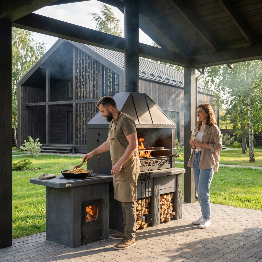 Комплект для готовки на открытом воздухе и в беседке - это надежное, функциональное и стильное решение, которое позволит вам с легкостью готовить вкусные блюда и наслаждаться приятной компанией. Он идеально подходит для различных мероприятий, будь то семейные посиделки, дружеские вечера или праздничные застолья. Благодаря прочным материалам и качественной сборке, этот комплект будет служить вам долгие годы, оставаясь надежным и стильным акцентом на вашей территории барбекю.. Включающий в себя печь-барбекю "Принц", печь под казан "Князь", разделочный стол "Боярин", декоративные дверцы, решетку-гриль, набор для печи и чугунный казан 10 л. Этот комплект обеспечит вам все необходимое для комфортного приготовления вкусных блюд на свежем воздухе.
