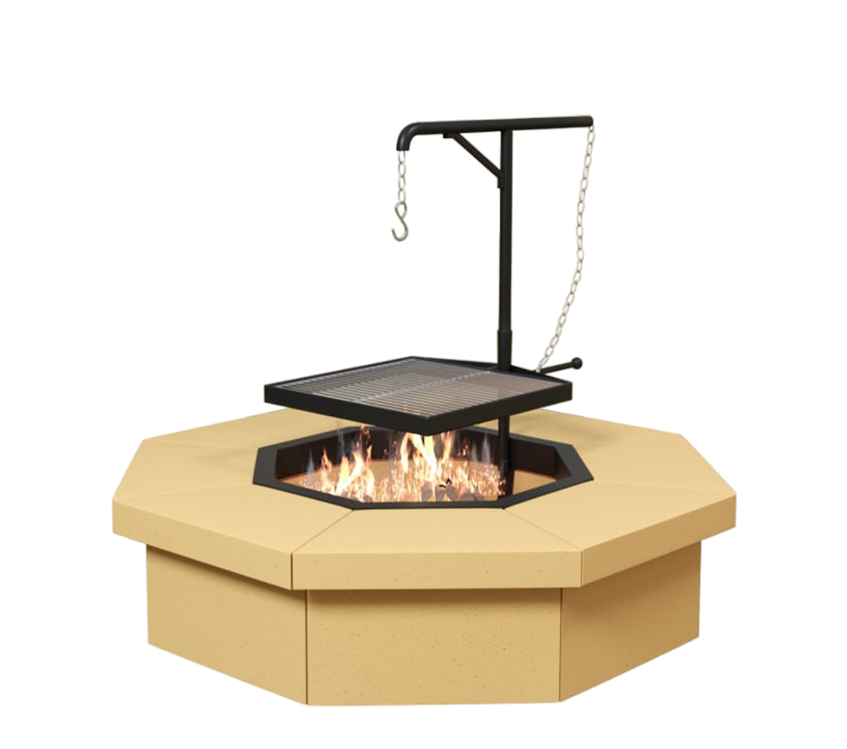 Многофункциональное костровое - это не только очаг, но и возможность готовить вкусные блюда, благодаря удобной для хранения и транспортировки разборной конструкции. Костровое одинаково хорошо подходит как для решетки-гриль, так и для шампуров. Помимо этого оно оснащено механизмом под казан, что делает это устройство незаменимым для приготовления еды на природе.