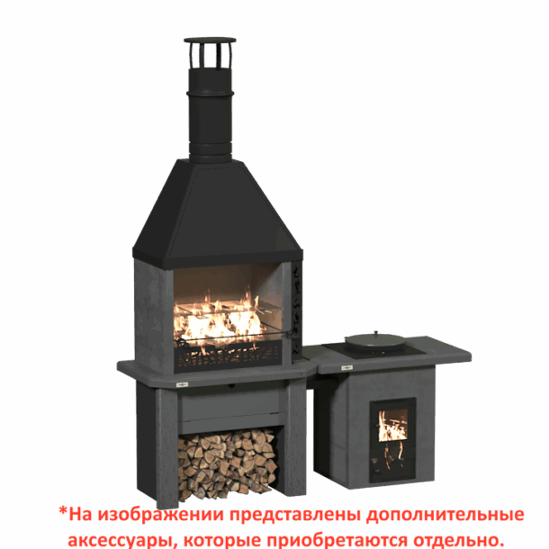 Уникальная печь 2-в-1 объединила самую популярную печь-барбекю «Принц» с мангальной зоной 640х400 и печь под казан «Князь» в одну систему с общим дымоходом 250 мм. Это максимум функциональности при экономии места и максимальной простой монтаж. Идеальное решение для самой разнообразной кухни в вашей зоне барбекю. Есть модификации с печью-тандыром "Хан".
