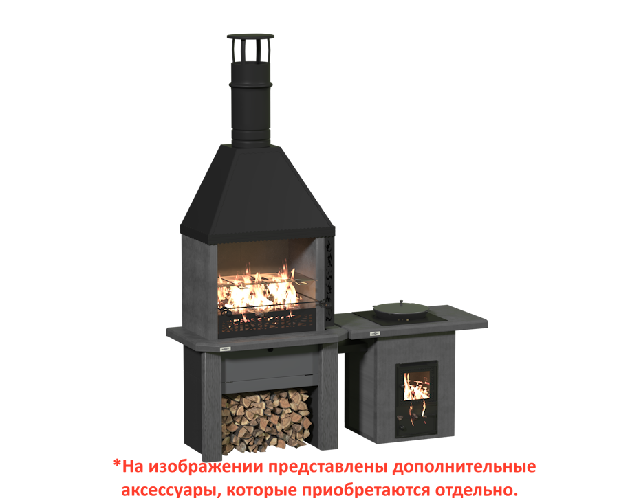 Уникальная печь 2-в-1 объединила самую популярную печь-барбекю «Принц» с мангальной зоной 640х400 и печь под казан «Князь» в одну систему с общим дымоходом 250 мм. Это максимум функциональности при экономии места и максимальной простой монтаж. Идеальное решение для самой разнообразной кухни в вашей зоне барбекю. Есть модификации с печью-тандыром "Хан".