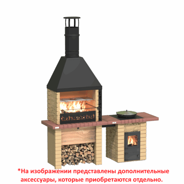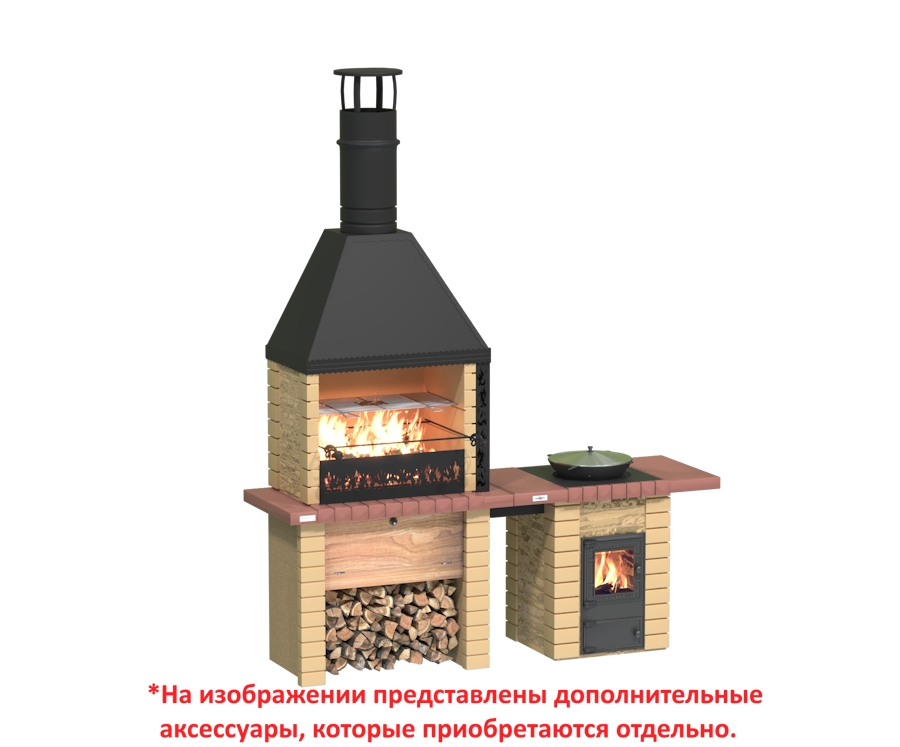 Уникальная печь 2-в-1 объединила самую популярную печь-барбекю «Принц» с мангальной зоной 640х400 и печь под казан «Князь» в одну систему с общим дымоходом 250 мм. Это максимум функциональности при экономии места и максимальной простой монтаж. Идеальное решение для самой разнообразной кухни в вашей зоне барбекю. Есть модификации с печью-тандыром "Хан".