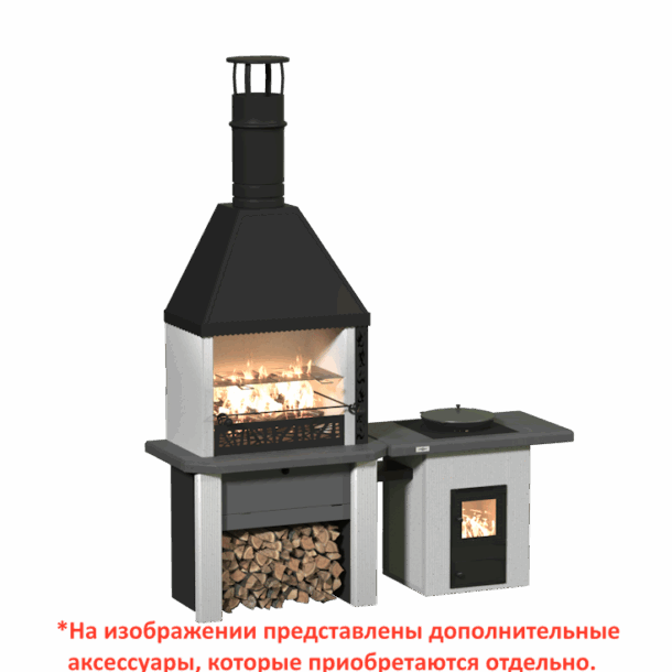 Уникальная печь 2-в-1 объединила самую популярную печь-барбекю «Принц» с мангальной зоной 640х400 и печь под казан «Князь» в одну систему с общим дымоходом 250 мм. Это максимум функциональности при экономии места и максимальной простой монтаж. Идеальное решение для самой разнообразной кухни в вашей зоне барбекю. Есть модификации с печью-тандыром "Хан".