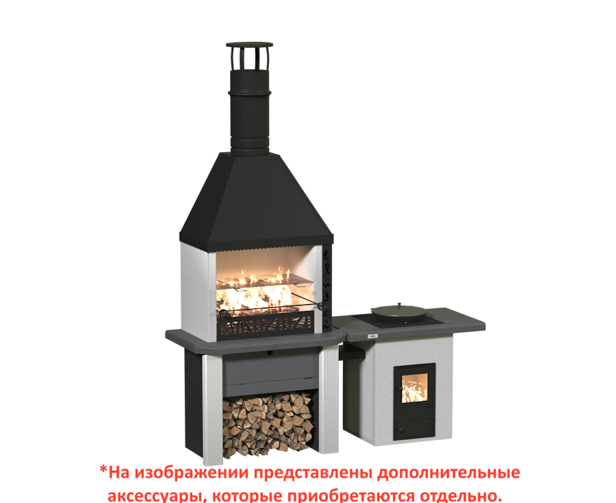 Уникальная печь 2-в-1 объединила самую популярную печь-барбекю «Принц» с мангальной зоной 640х400 и печь под казан «Князь» в одну систему с общим дымоходом 250 мм. Это максимум функциональности при экономии места и максимальной простой монтаж. Идеальное решение для самой разнообразной кухни в вашей зоне барбекю. Есть модификации с печью-тандыром "Хан".