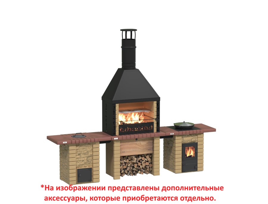 Три печи в одной для самого разнообразного меню. 3-в-1 - Самая популярная печь-барбекю «Принц» с мангальной зоной 640х400, печь-тандыр «Хан» и печь под казан «Князь» сведённые в общий дымоход. Максимальная функциональность, экономия места и материалов. Создавайте кулинарные шедевры, не ограничивая себя в выборе блюд.