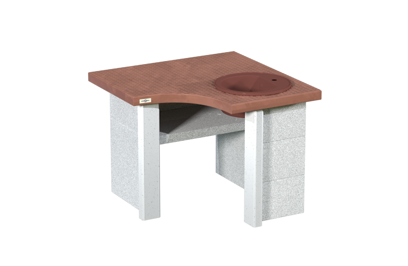 Угловой стол с мойкой из искусственного камня - необходимый элемент барбекю-комплекса. Он оснащен столешницей с элегантным дизайном, которая является удобной рабочей поверхностью и круглой мойкой, что облегчает процесс приготовления пищи. Он прочный и долговечный, идеален для использования на улице. Будьте уверены, что угловой стол с мойкой - это надежное и удобное решение.