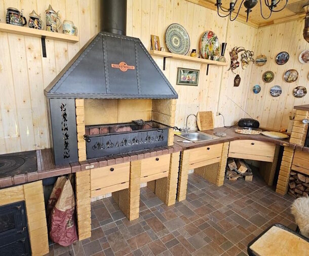 Стол разделочный угловой для барбекю — комплекса имеет плоскую рабочую поверхность и предназначен для приготовления пищи, а все элементы выполнены из экологически чистых материалов, не выделяющих вредных веществ. Он станет прекрасным дополнением к вашему барбекю-комплексу!